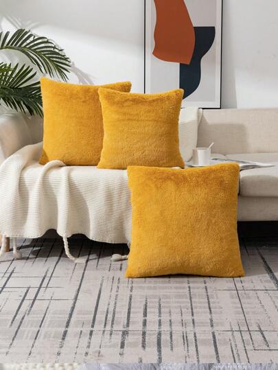 1 funda de cojín amarilla de unicolor sin relleno, funda de cojín elástica moderna para el hogar - Amarillo - Añade 3