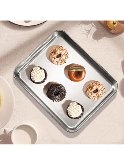 1 pieza Bandeja rectangular plana para hornear pasteles de acero inoxidable, sartén cuadrada japonesa profunda y gruesa, recipiente cuadrado para toallas, para hornear y repostería - Multicolor - Añade 1