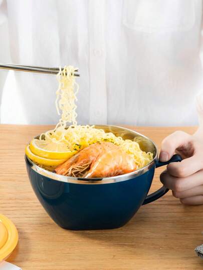 1 pieza Tazón de fideos aislado de acero inoxidable, a prueba de calor - Multicolor - Añade 19