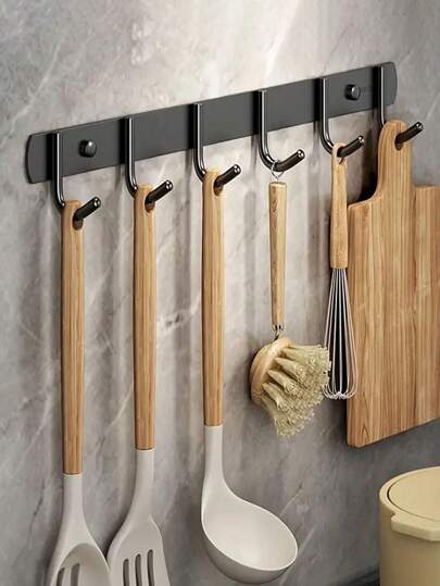 1 pieza Organizador de cocina de acero inoxidable, con múltiples ganchos para almacenamiento y drenaje conveniente de utensilios de cocina, para organizar estantes de encimera y limpieza de la cocina - Multicolor - Añade 6