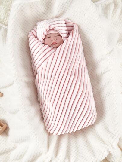 1 Pieza Manta Envolvente Para Bebé De Franela A Rayas - Rosa - Añade 3
