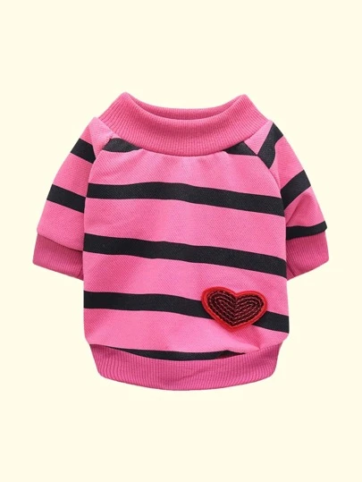 1 pieza Camiseta de mascota con estampado de rayas con corazón con diseño de parche - Multicolor - Añade 4