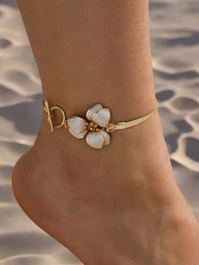 1 pieza Tobillera de estilo playa con flores coloridas de tres hojas, en degradado verde veraniego, para mujer - Tobillera de trébol blanco - Añade 1