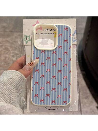1 pieza Funda de teléfono con diseño de rayas azules y lazo rojo, de material TPU, compatible con iPhone 17 Pro Max/17/16 Pro Max/15/13/12/11, S20 FE/A15/S24/A55, Redmi Note 11/Note 12/Note 13 Pro, cubierta protectora suave de Body completo - Blanco - Añade 5