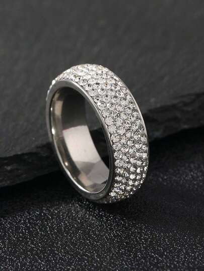 1 pieza Anillo de acero de titanio con circonita cúbica, anillo unisex elegante adecuado para parejas - anillo - Añade 1