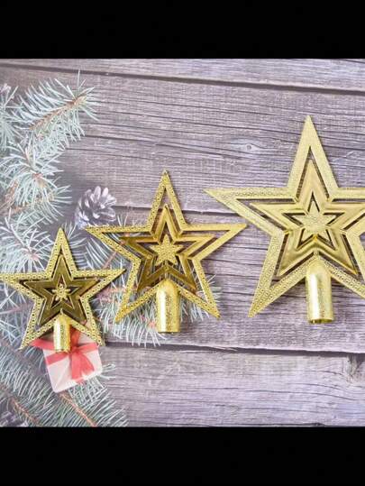 1 pieza Decoración de estrella en la parte superior del árbol, estrella dorada de cinco puntas, adecuada para la parte superior del árbol, perfecta para la decoración de fiestas, decoración de reuniones familiares, mejor regalo, decoración del hogar, decoraciones navideñas, decoración de habitaciones, decoraciones navideñas de invierno, regalos de Navidad, decoración navideña - Multicolor - Añade 3