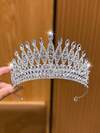 1 pieza Corona grande plateada, diadema de estilo dulce y elegante, adecuada para cumpleaños y accesorios de actuación