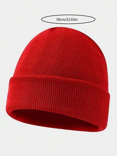 1 pieza Gorro de punto rojo sólido unisex, gorro de punto cálido para uso diario - Rojo - Añade 12