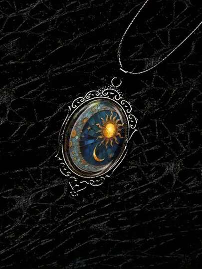 1 pieza Joyería romántica vintage unisex con estampado de sol y luna en negro - Negro de pistola - Añade 1