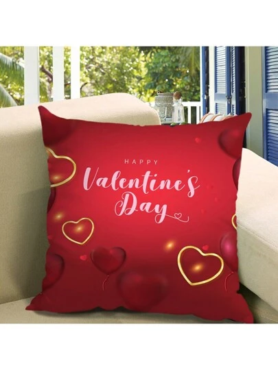 1 Pieza Funda De Almohada Impresa Con Patrón Rojo Para El Día De San Valentín, Cubierta De Almohada Decorativa Para Cojín De Sofá. (almohada No Incluida) - Multicolor - Añade 2