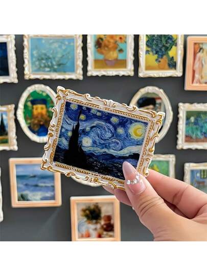 1 pieza Imán de refrigerador de la serie de arte de Van Gogh, marco magnético creativo de alta calidad de cielo estrellado, pegatina decorativa retro 3D cultural y creativa - Multicolor - Añade 13
