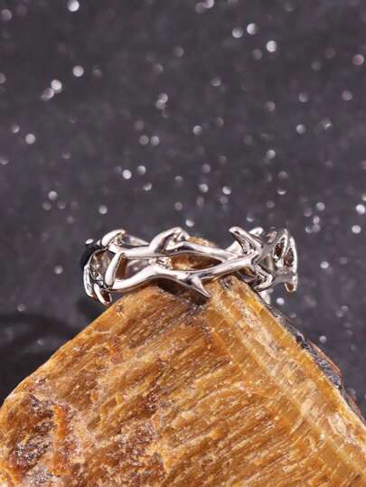 1 pieza Anillo abierto ajustable de espinas vintage punk de plata para hombre, joyería - Multicolor - Añade 1