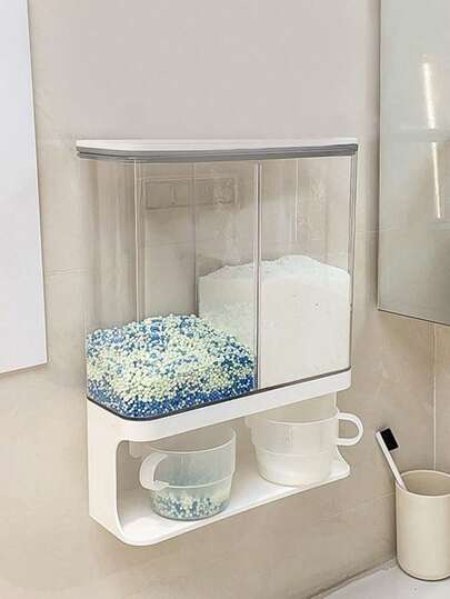 1 pieza Dispensador de detergente de lavandería montado en la pared - Almacenamiento versátil para potenciadores de aroma de lavandería con tazas incluidas Artículos de cocina Accesorios de cocina Cocina Herramientas de cocina - Multicolor - Añade 3