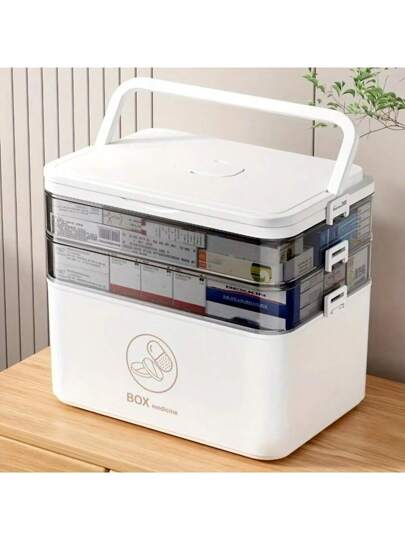1 pieza Caja de almacenamiento de píldoras multicapa impermeable - Organizador de medicamentos de plástico con tapa transparente, asa portátil, adecuado para el hogar, oficina, dormitorio, baño - Multicolor - Añade 3