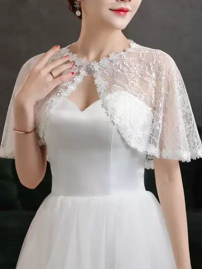 1 pieza Chal de encaje blanco con patrón floral elegante para ropa de boda de otoño para mujeres - Blanco - Añade 1