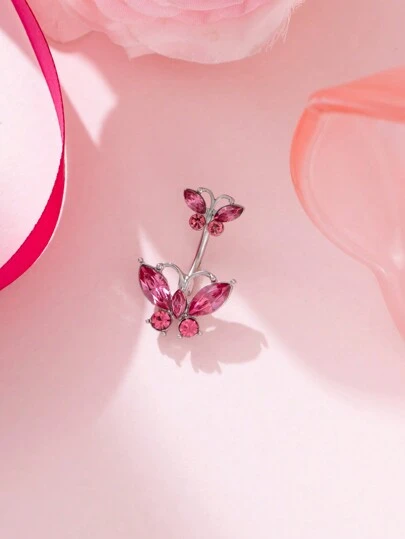 1 Pieza Anillo Para Ombligo Con Diseño De Mariposa Y Circonia Para Mujeres - Rosa - Añade 4