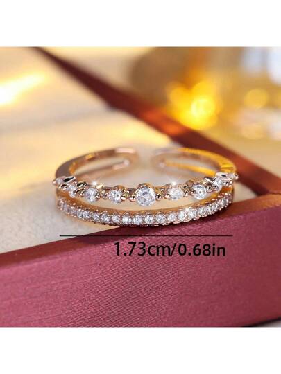 1 pieza Anillo de oro chapado con circonita de doble capa, versátil y de moda, joyería de regalo para mujer en vacaciones - Dorado - Añade 2