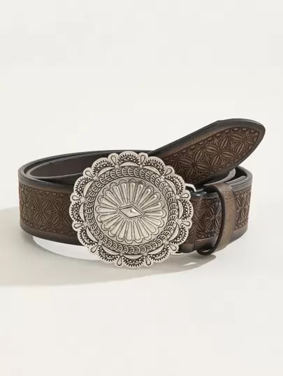1 pieza Cinturón de mujer con detalle en relieve, estilo bohemio, para verano, escuela, otoño, Halloween - Café integral - Añade 1