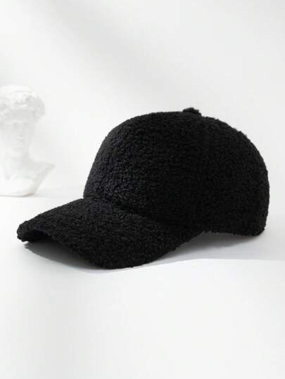 1 pieza Gorra de béisbol de unicolor de mujer con forro de borreguito cálido y cierre de gancho y bucle, adecuada para uso diario - Negro - Añade 1