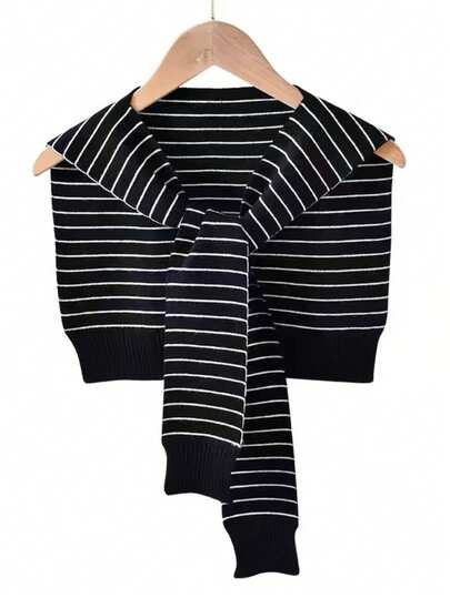 1 pieza Bolero de mujer estilo dulce de unicolor de punto, caliente calentador de hombros adecuado para uso diario - Rayas negras - Añade 1