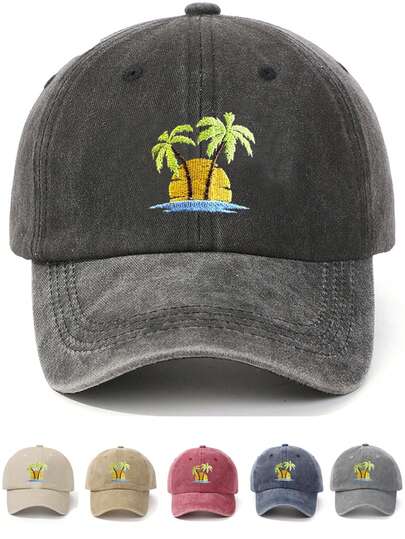 1 pieza Gorra de béisbol para mujer con árbol de coco bordado estilo playa, lavada, apta para playa, vacaciones, primavera, verano, otoño, uso diario y al aire libre - A - Añade 3
