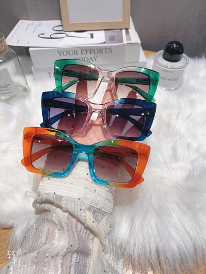 1 pieza Gafas cuadradas de moda para mujer, marco degradado de alta calidad, patillas de estilo callejero de PC, patas con resorte, versátiles y vintage para uso diario - Degradado - Añade 11