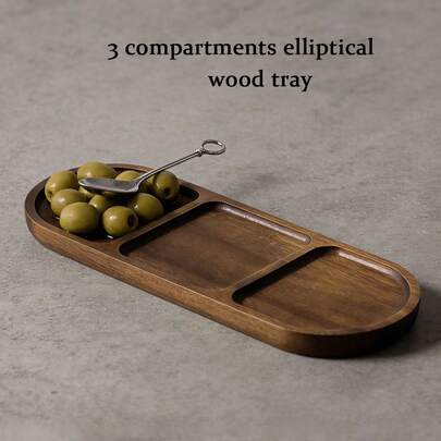 1 pieza Bandeja de compartimentos ovalada de madera, plato de cena, bandeja de compartimentos, bandeja, fuente, para platos, salsa para mojar, aperitivos, pasteles, bandeja para café, bandeja de servicio de comida para fiestas, almacenamiento de condimentos de cocina, ranura profunda, utensilios de cocina pequeños, muy adecuada para cocina, restaurante, almacenamiento en habitación, decoración del hogar, bandeja de madera multifuncional, adecuada para todas las estaciones, excelente opción de regalo