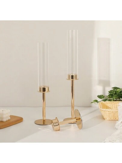 3 piezas, Elegante portavelas de metal con globo de vidrio, centro de mesa dorado para bodas, candelero para la decoración de mesas, decoración de fiestas, suministros de fiesta, decoración para las festividades, decoración de mesas, decoración de salón comedor - Dorado - Añade 2