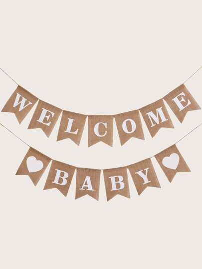 1 conjunto - Decoración de regalo de género neutral, adecuado tanto para niños como para niñas, Pancarta de bienvenida de arpillera rústica - Caqui - Añade 2