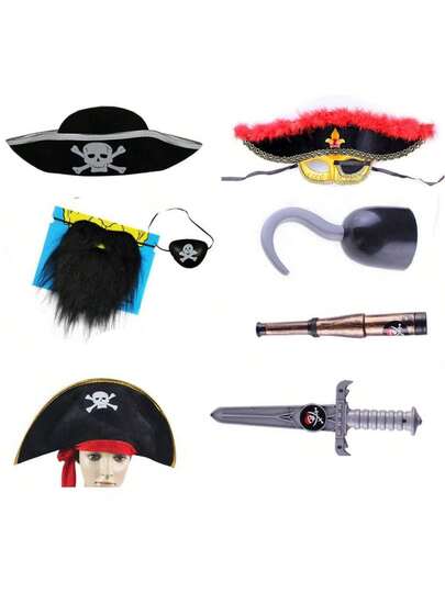 1 Set de accesorios de disfraz de pirata para fiesta de Halloween Decoración de Halloween El Día de los Muerto - Multicolor - Añade 8