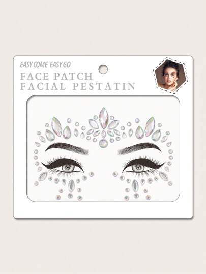 1 hoja de pegatina de tatuaje facial de rhinestone - Blanco - Añade 5