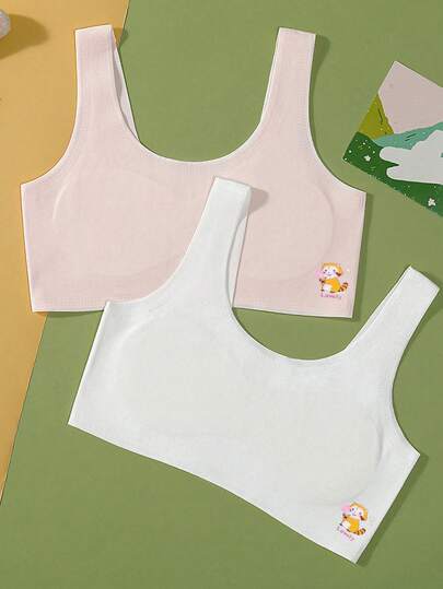 Set de 2 piezas de ropa para niñas, nuevo camisón transpirable y cómodo con estampado de orejas de conejo, con sujetador acolchado para niñas en desarrollo, sujetador sin costuras para estudiantes - Multicolor - Añade 2