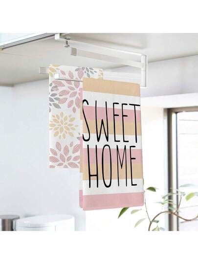 Set de 2 paños de lavado de vajilla de color verde primaveral y saludable, de 40 * 60 cm de forma rectangular, con estampado floral fresco y práctico de fibra de poliéster, adecuados para fiestas en el hogar, cocina y decoración de restaurantes - Toalla de primavera - Añade 7