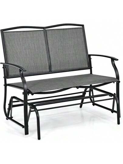 Banco de jardín de 2 plazas, banco mecedor con estructura de metal, capacidad de carga hasta 180 kg, banco de exterior con mecanismo basculante para parque, jardín, terraza y balcón, 105 x 71,5 x 93 cm (gris) - Gris - Añade 4