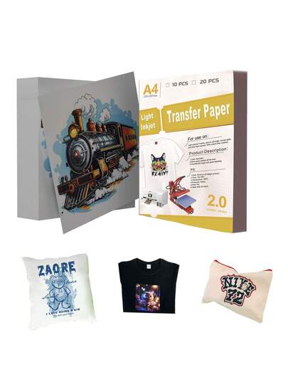 20 hojas de papel de transferencia térmica premium brillante A4: ideal para diseños textiles vibrantes y duraderos - Blanco - Añade 1