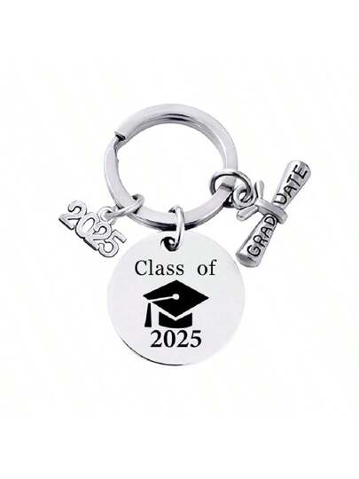 Recuerdo de graduación 2025 Regalo inspirador "Me gradué de la clase de 2025" Llavero de acero inoxidable, diseño lindo Accesorios de coche escolares Gótico Y2k Cordones de identificación con soporte Accesorios de coche Encantos de bolso - Plateado - Añade 1