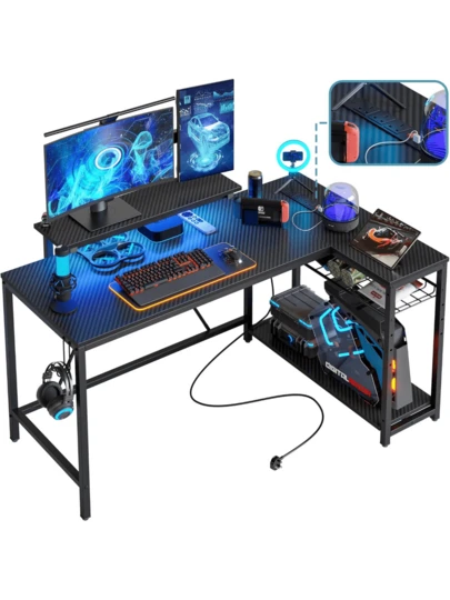 2025-NEWLights Compact Corner Desk With Shelves Reversible Computer Desk With Hooks For Home Office Bedroom Small Space 106.5CM - 132,5 cm - Añade 1