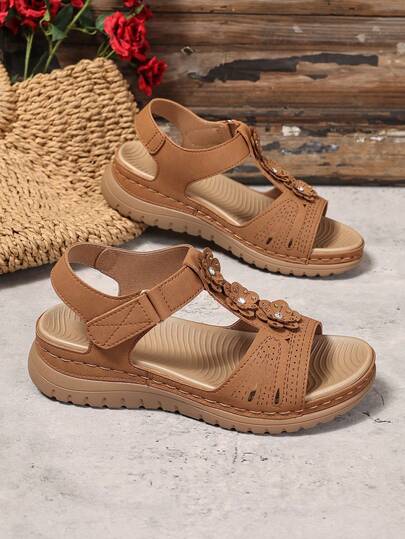 Sandalias de punta abierta de talla grande de estilo casual para 2025, sandalias romanas para mujer con hebilla y diseño de cierre de para uso en exteriores - Marrón - Añade 1