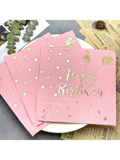 20 PIEZAS de Servilletas desechables cuadradas de 13 x 13 pulgadas con estampado en caliente dorado y plateado para fiestas de cumpleaños rosadas, para fiestas, restaurantes, cafés, hornear - Rosa Pálido - Añade 5