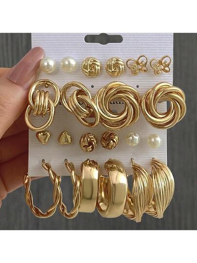 Set De 22 Piezas De Aretes Con Forma De Mariposa Y Perlas Falsas Con Forma De C - Amarillo Oro - Añade 1