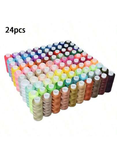 Juego de 24 piezas de hilos de coser multiusos, hilos de coser de poliéster adecuados para principiantes, sastres, costura a mano y máquina de coser, ideal para emergencias, viajes, manualidades y uso doméstico (colores aleatorios) - Multicolor - Añade 1