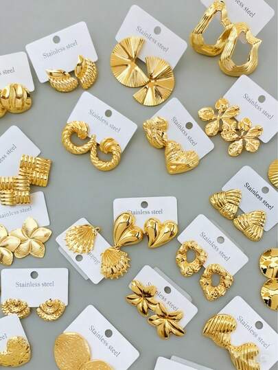 Set de 24 piezas - Juego de aretes elegantes y de moda de acero inoxidable con color dorado aleatorio, hipoalergénico, mejor opción de regalo para amigas (entrega aleatoria)
