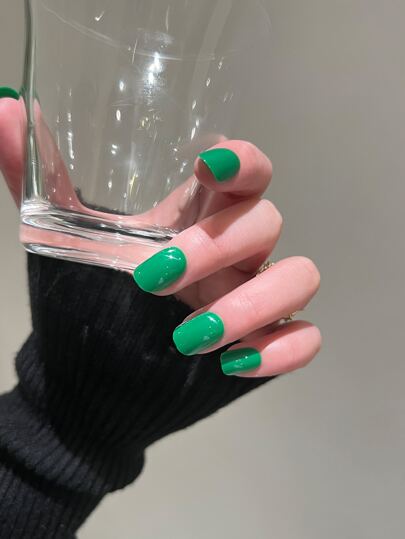 Mejora tu apariencia con 24 uñas postizas cuadradas cortas, verdes, lisas, 1 lima de uñas y 1 hoja de cinta - Verde - Añade 3