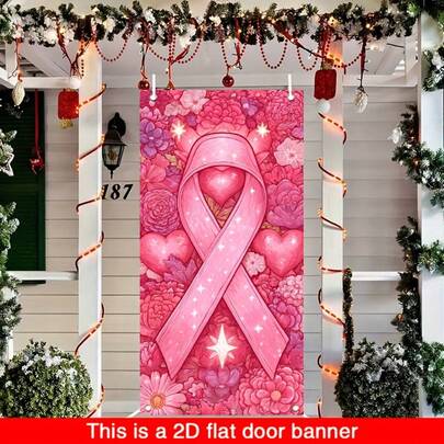 2 Banderines planos [Banderines de fiesta, Banderines de bandera/Banderines de fiesta] 1 pieza (35 * 70 pulgadas/90 * 180 cm), material de poliéster, banderín para el marco de la puerta con tema de prevención y control del cáncer de mama, cinta rosa, diseño de imagen femenina de moda, adecuado para lugar público tema y decoración de banderín, y cortina decorativa colgante dentro y fuera de la sala de actividades temáticas. Hay varios estilos y tamaños disponibles para su selección.