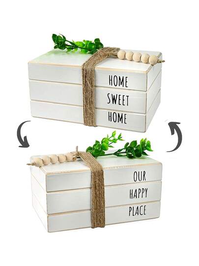 Libros Decorativos 2 En 1 Para Decoración Del Hogar, Libros Apilados Para Decoración, Decoración Para La Mesa De Café, Libros Decorativos Estilo Granja, Decoración De Libros, Decoración De Libros Apilados, Libros Falsos Para Mesa, Libros Falsos Blancos, Decoración De Pila De Libros - Blanco - Añade 2