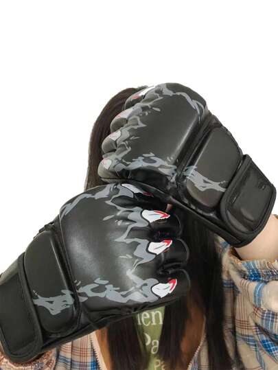 2 Piezas Juego De Guantes De Boxeo Mma Con Diseño De Garra De Tigre Para Adultos Con Dedos Medio Al Descubierto - Negro - Añade 1