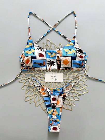 2 piezas Conjunto de bikini casual, elegante y sexy con estampado de leopardo y estrella bohemio, con recorte de encaje y crochet en contraste para traje de baño de playa, primavera/verano