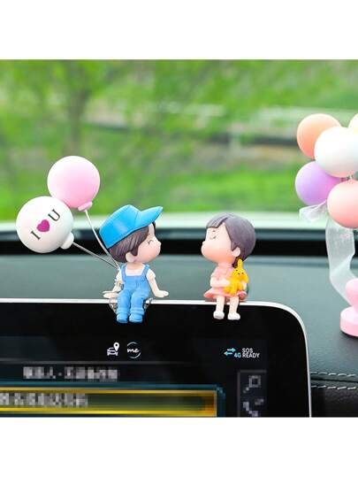 2 piezas Decoraciones de muñecos de pareja lindos para el interior del automóvil, aptos para el tablero, la rejilla de ventilación, exhibición - Azul - Añade 4