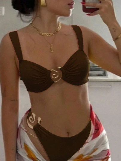 2 piezas Accesorios íntimos de forma elaborada, silueta sexy de talle alto, color piel, para primavera y verano - Marrón oscuro - Añade 5