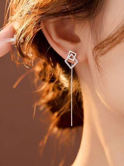 Nooxian 2 piezas de pendientes de aro con incrustaciones de circonita cúbica cuadrada geométrica brillante con borlas para mujeres - Plateado - Añade 1